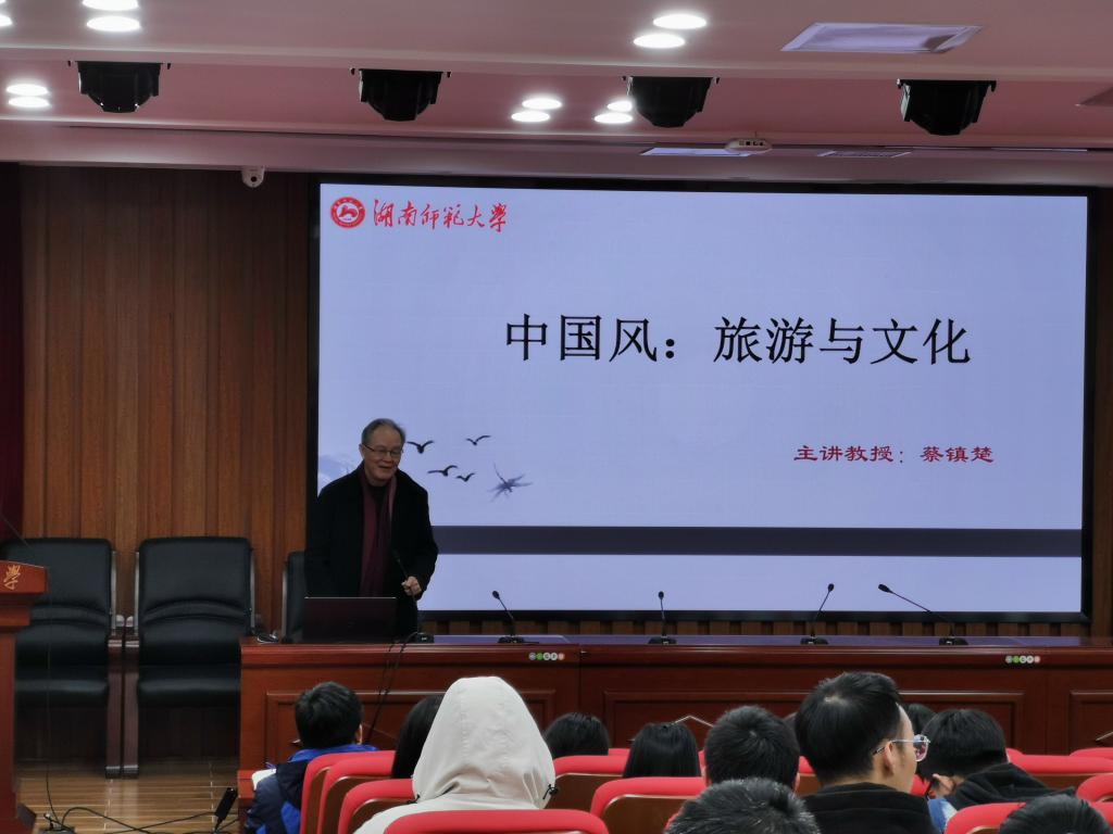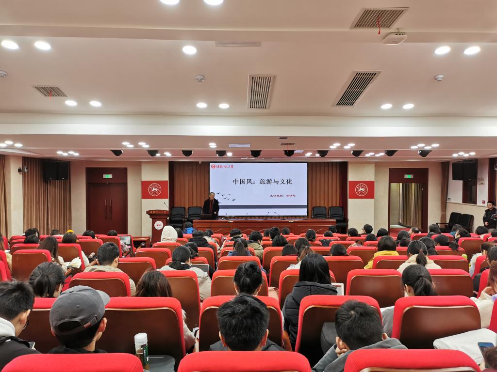 (通讯员 翁金燕 戴灵芝),12月18日晚上,湖湘旅游论坛系列讲座在中和楼129报告厅进行。湖南师范大学文学院蔡镇楚教授主讲"中国风—旅游与文化",院党委书记鲁良出席,讲座由旅游管理系主任罗文斌主持。